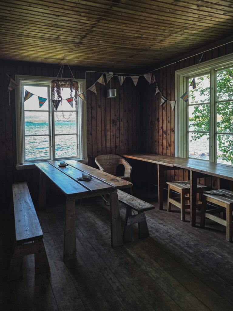 Magen är också sugen på middag. På STF Saltoloukta sitter alla och äter vid gemensamma bord så jag blir inte ensam. Över färsk fisk snackar vi vandring och byter historier, tips och förslag. Stämningen är gemytlig och hungern är precis sådär som bara flera dagar vandring kan väcka.