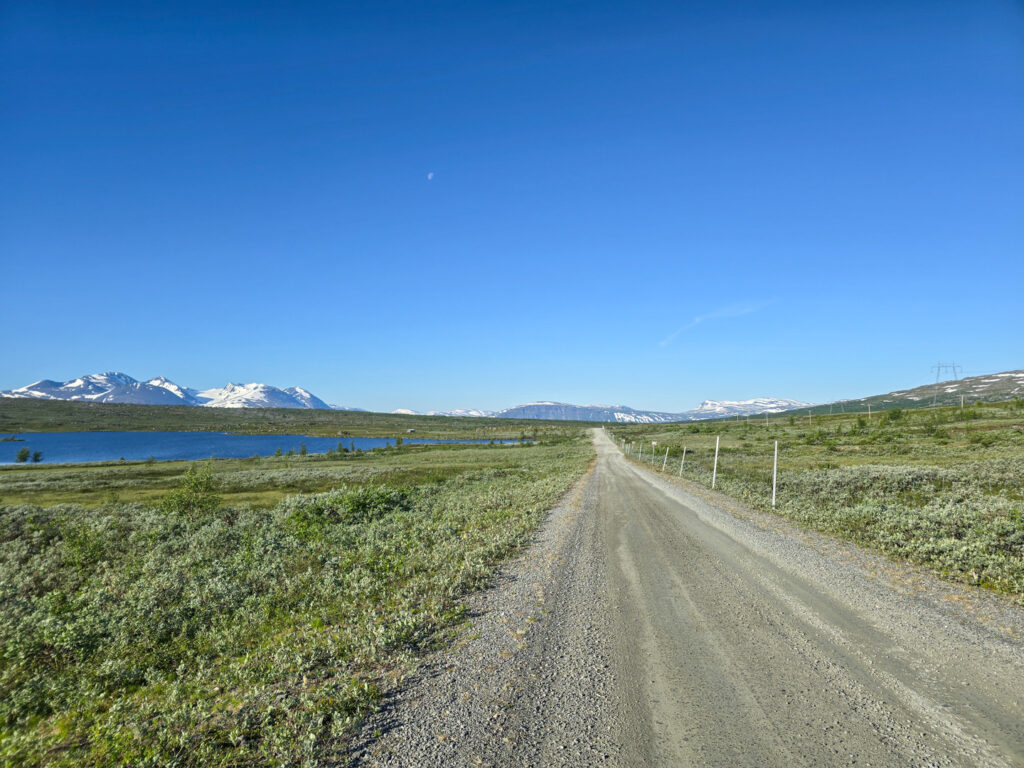 Tältet åter raskt ner i ryggsäcken och jag vandrar iväg. Som vanligt rullar det på när jag vandrar på grusväg. Det tar inte ens två timmar att vandra den sista biten till Ritsem.